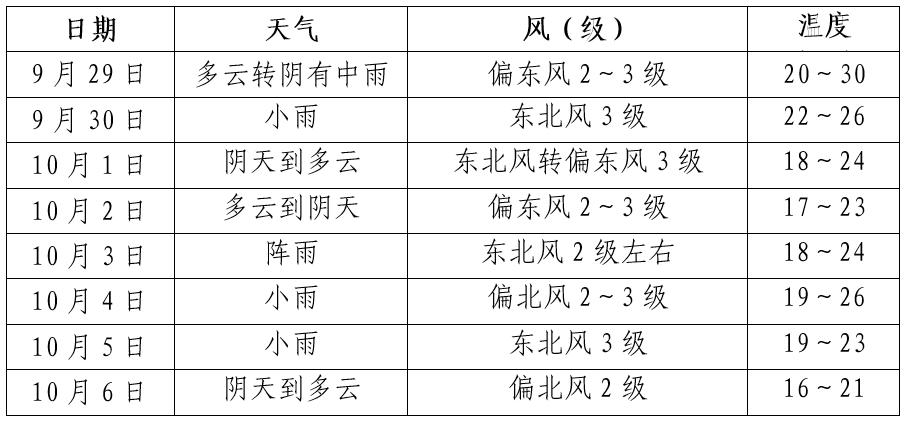 假期政策及天气(一)通行政策。2023年中秋、国庆假期从9月29日(周五)到10月6日(周五),共8天,全国收费公路继续对7座以下(含7座)小型客车免收通行费,免费时段为9月29日0时至10月6日24时。