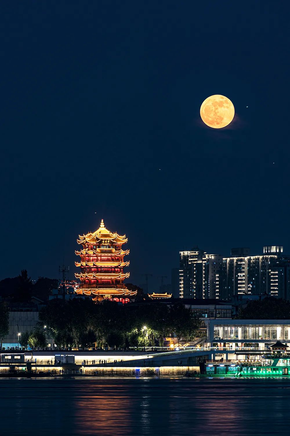 而最近的黄鹤楼,伴随着满月的背景,再加上“中秋登楼夜”特殊意境的加持,俨然成为今年中秋时节,中华大地上的一处文化高地。中秋,要有黄鹤楼哦~