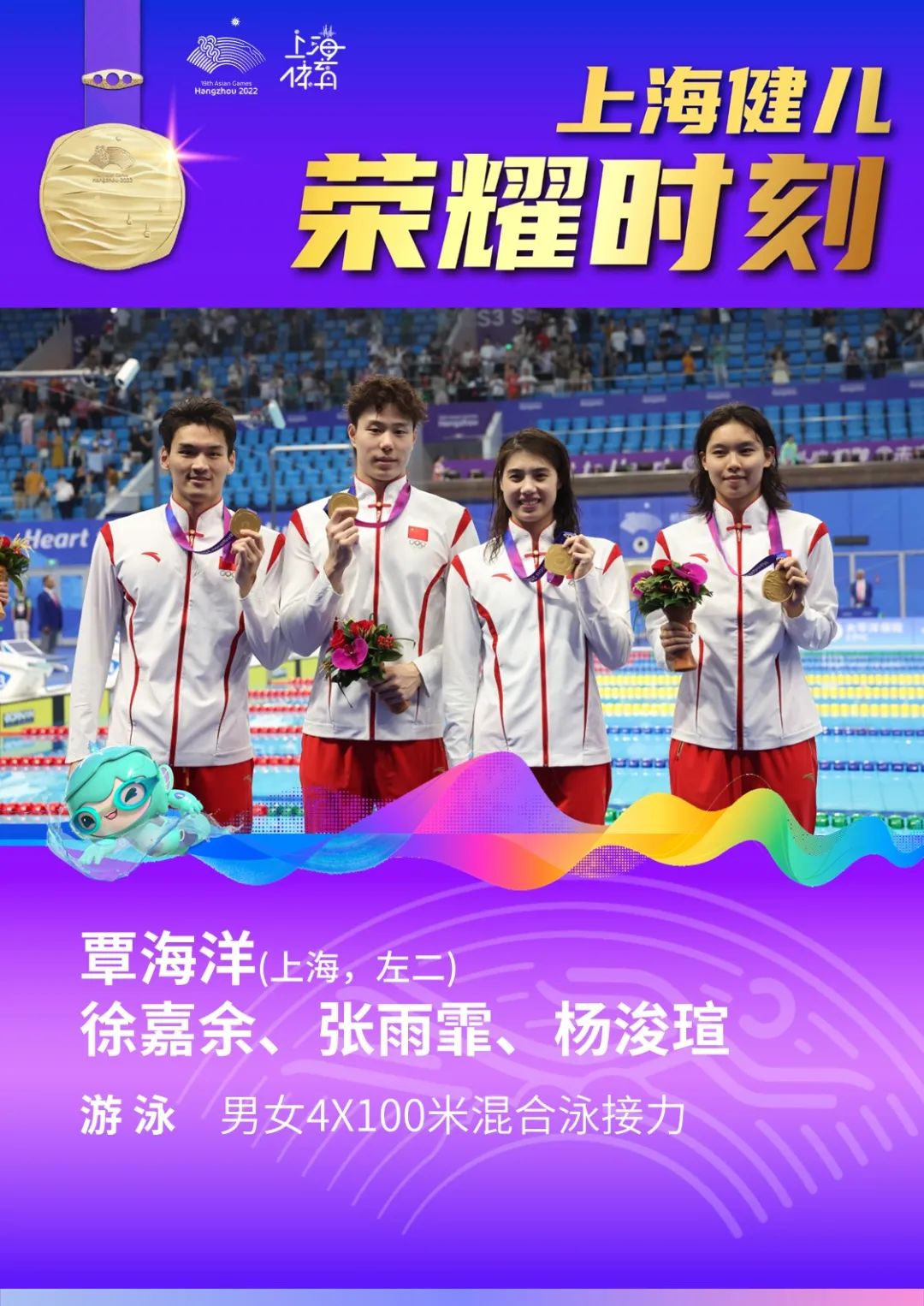 在刚刚结束的杭州亚运会游泳项目男女混合4×100米混合泳接力决赛中,中国选手、来自上海的覃海洋搭档徐嘉余、张雨霏、杨浚瑄,以3:37.73的成绩打破该项目亚洲纪录,为中国队再添一金!恭喜!