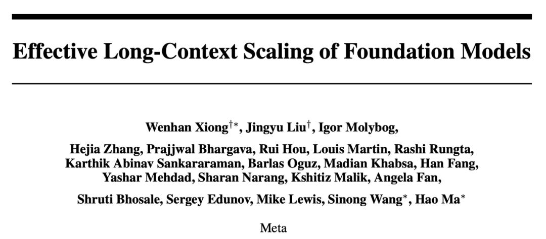 论文地址:https://ai.meta.com/research/publications/effective-long-context-scaling-of-foundation-models/在上面这篇论文中,Meta 通过持续预训练 LLAMA 2 checkpoints 来构建模型,并使用了额外的 4000 亿个 token 作为长训练序列。在该系列模型中,较小规模的 7B/13B 变体使用了 32768 个 token 序列进行训练,而 34B/70B 变体则使用了 16,384 个 token 序列。
