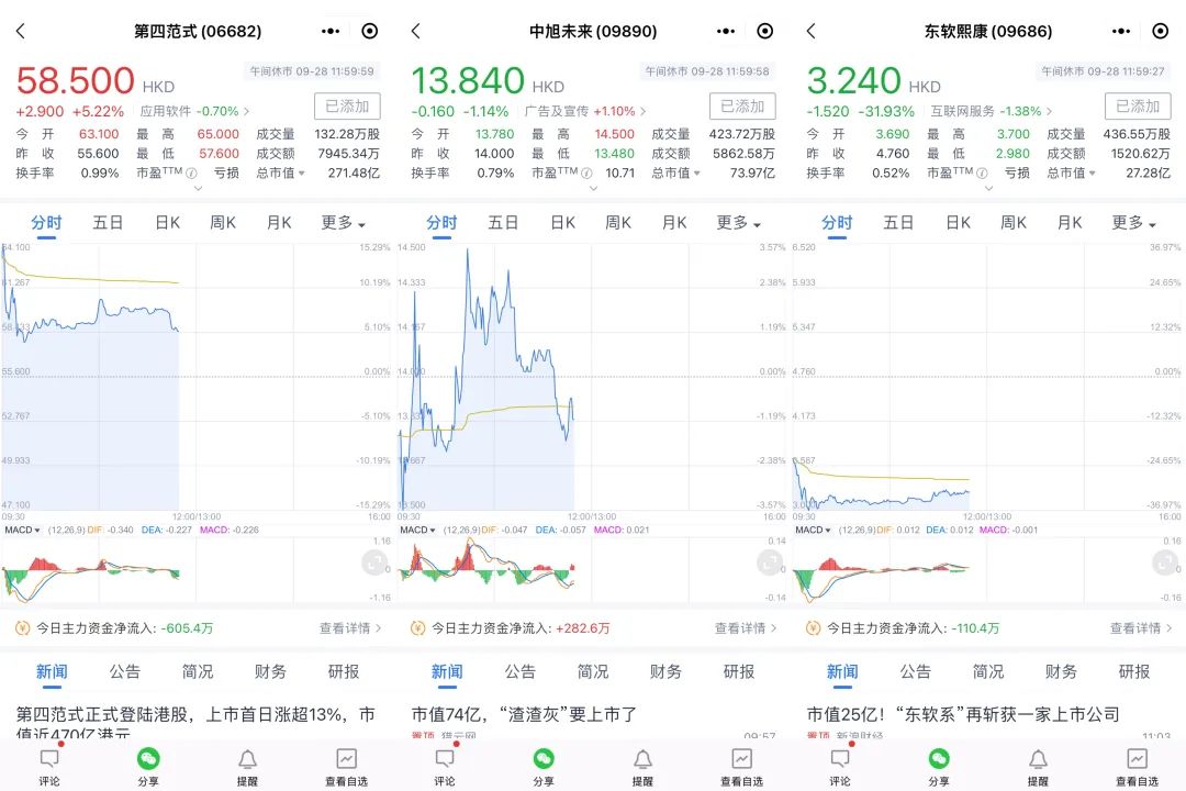 9月28日,第四范式、东软熙康、中旭未来这3家企业在港交所同天上市。这是继1月16日,望尘科技、百果园、美丽田园共赴IPO后,今年第二次三家同天IPO的小盛况。