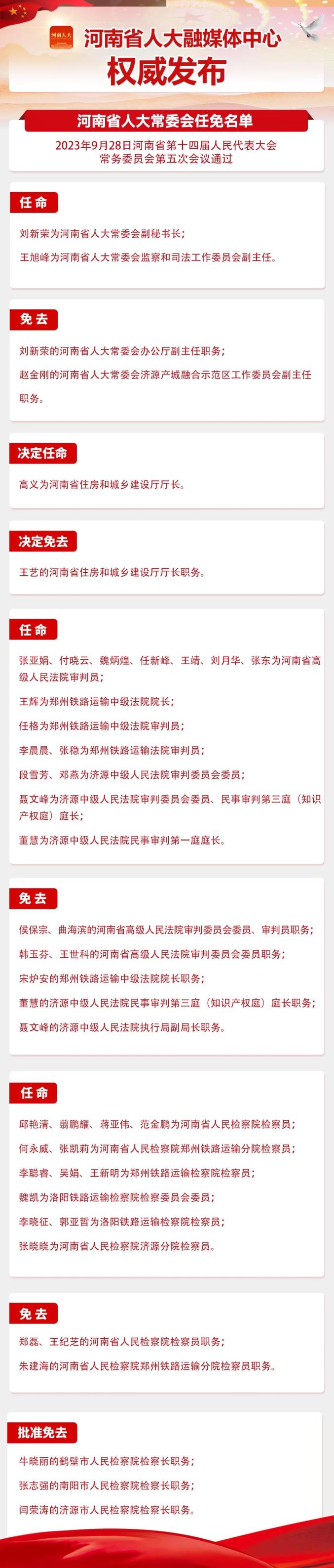 9月28日上午,河南省第十四届人大常委会第五次会议通过了一批人事任免。