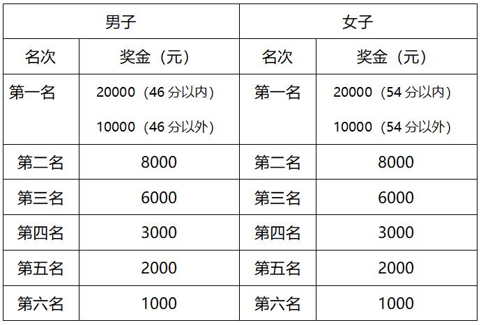 幸福一英里组根据枪声成绩录取前六名,分别获得奖金,前三名现场颁发奖杯。