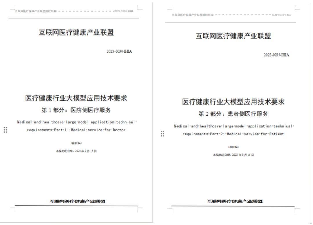 9月25日,由中国信息通信研究院牵头,国家卫生健康委医疗服务指导管理中心、北京协和医院、四川大学华西医院、国家骨科与运动康复临床医学研究中心、中国科学技术大学附属第一医院、华中科技大学同济医学院、郑州大学第一附属医院、北京邮电大学、清华大学精准医学研究院、讯飞医疗科技股份有限公司、《中华医学杂志》社有限责任公司、科学技术文献出版社有限公司等20余家相关产学研用单位共同研究起草的《医疗健康行业大模型应用技术要求 第1部分:医院侧医疗服务》、《医疗健康行业大模型应用技术要求 第2部分:患者侧医疗服务》等2项技术要求正式发布,成为业界首个围绕医疗健康领域提出的大模型应用技术标准规范。