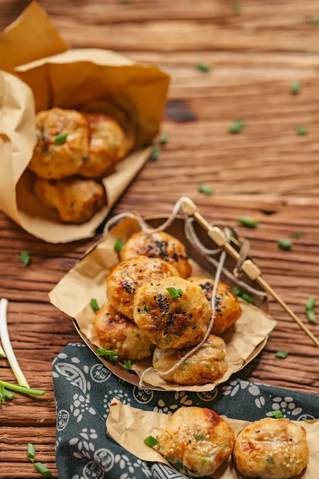 / 葱饼 /小小的葱饼,满满都是美味。刚出炉的小葱烧,经过烤制的芝麻滋滋冒着香气,饼皮金黄松脆,半焦的糖油闪着光亮,真是怎么吃都不腻!