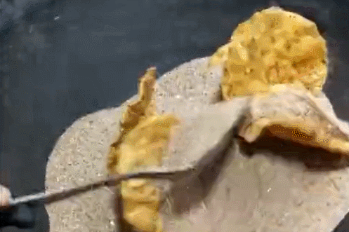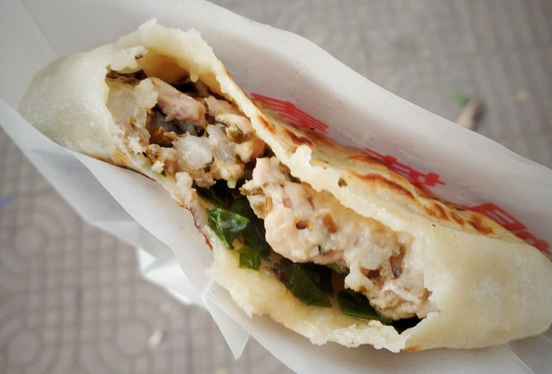 / 肉麦饼 /麦饼与平时常见的面饼还是有区别的,饼皮更加厚实还略微有些粗糙,但也正因如此饼皮的韧性更强,肉馅也必须放得更多,咬一口,肉饼的汁水顺口而出,葱香肉香也跟着扑鼻而来。