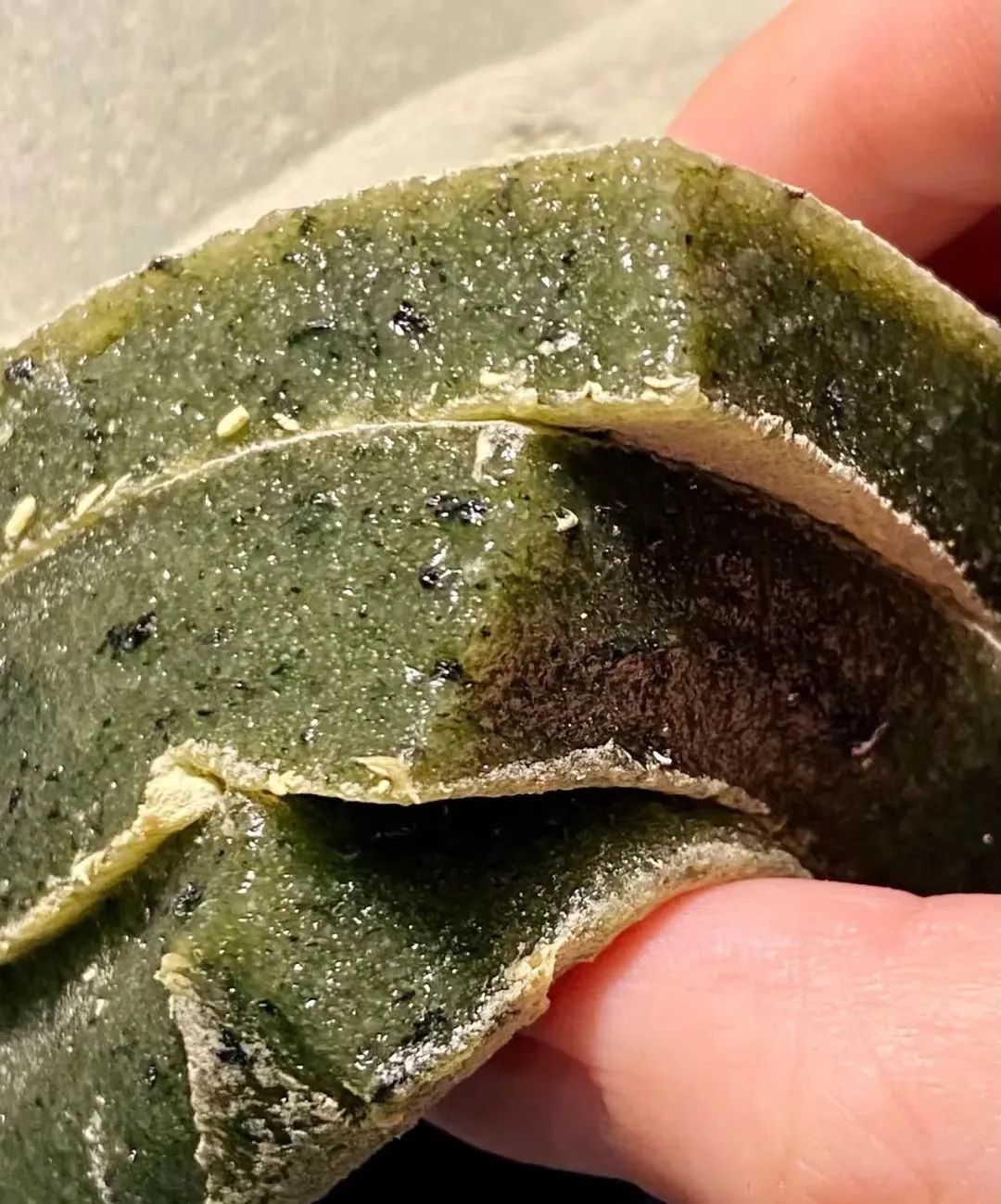 糕米中掺了艾叶,入口后便能感受到艾草独有的清香,仔细观察还能看见植物的纤维,咀嚼起来又软又香又甜,很是清爽,瞧妹强烈推荐哦!