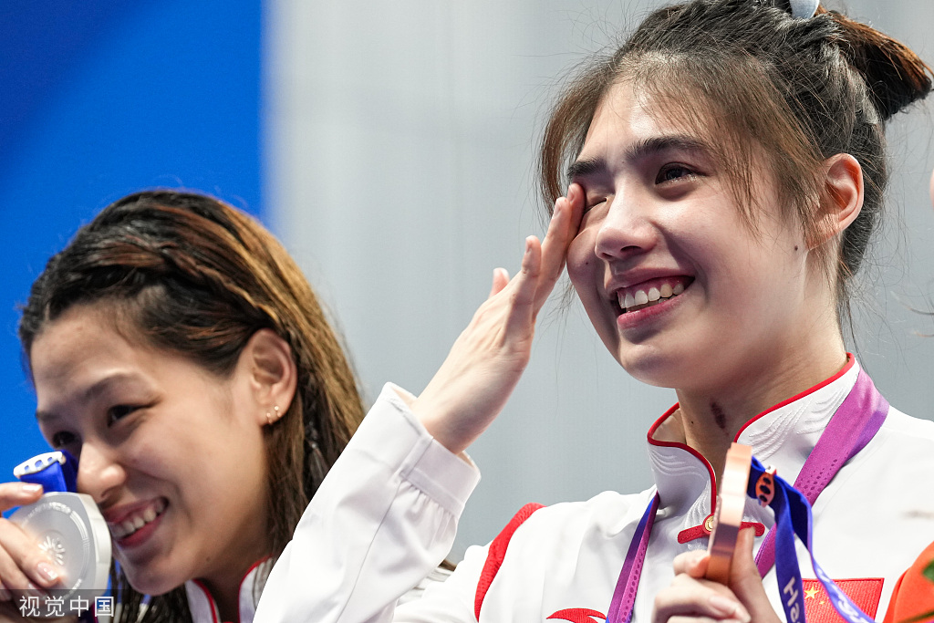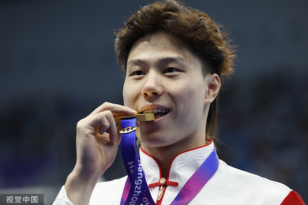 在他们身后,是中国游泳队亮眼的成绩单——在收官日前一天,中国游泳队便以24枚金牌追平在2010年广州亚运会上创造的历史最佳战绩,等到亚运会游泳项目收官,金牌数则攀升至28枚。