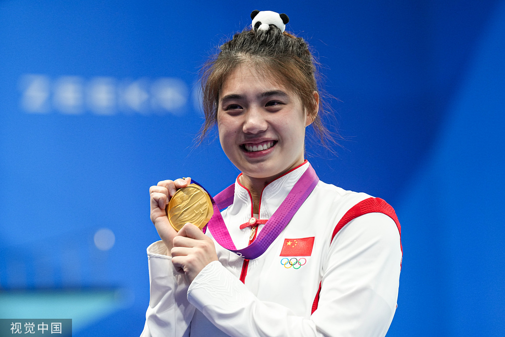 当张雨霏在50米蝶泳决赛中以25秒10的成绩第一个完成比赛,几分钟后,覃海洋也在男子50米蛙泳项目中以26秒35的成绩夺冠,这也是中国代表团本届亚运会的第100枚金牌。