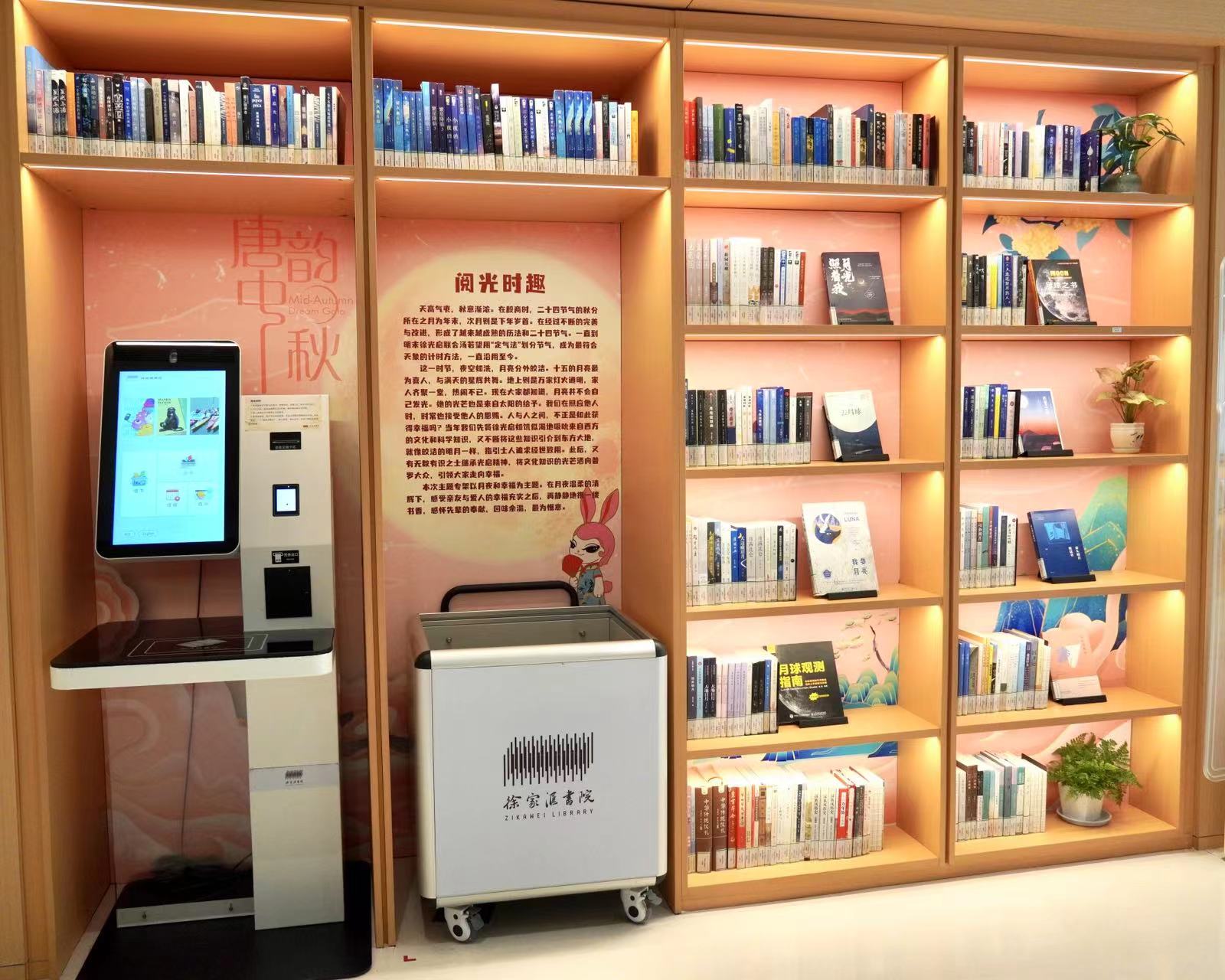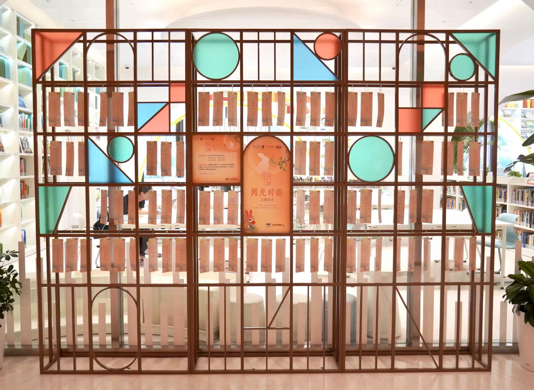 “阅光时趣”主题书架以月夜和幸福为主题,邀请读者共读中秋书籍