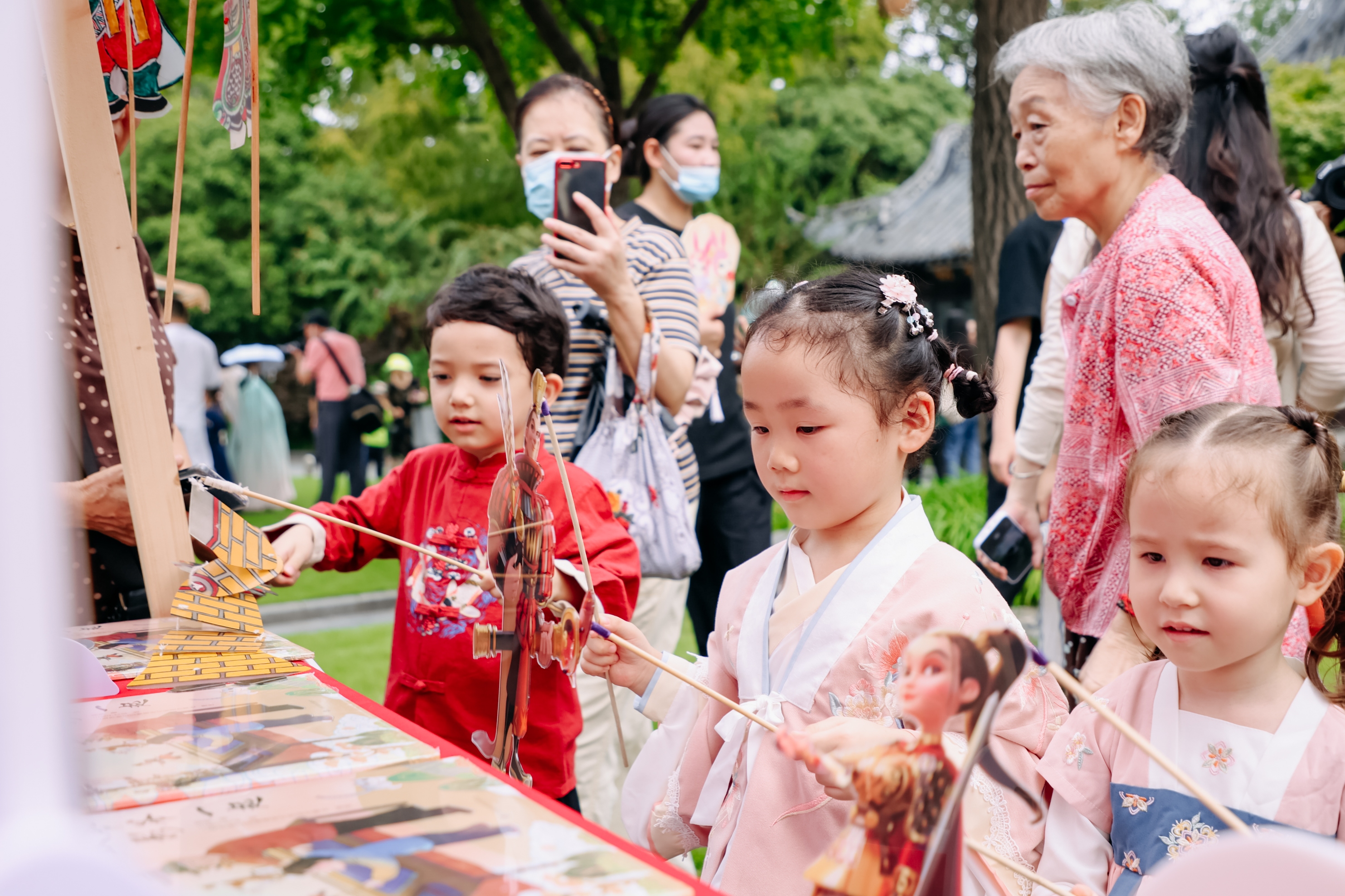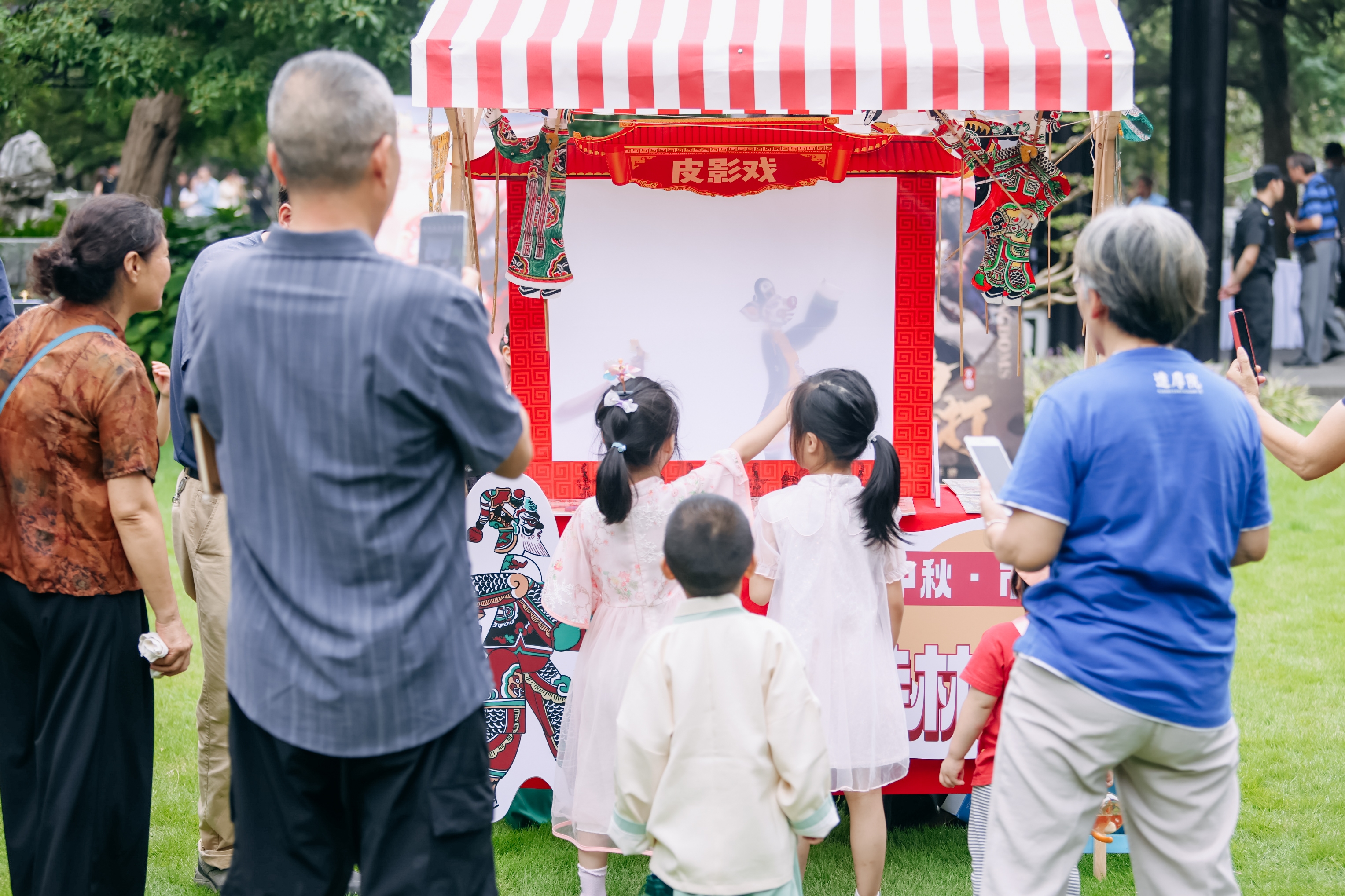 孩子们体验皮影戏