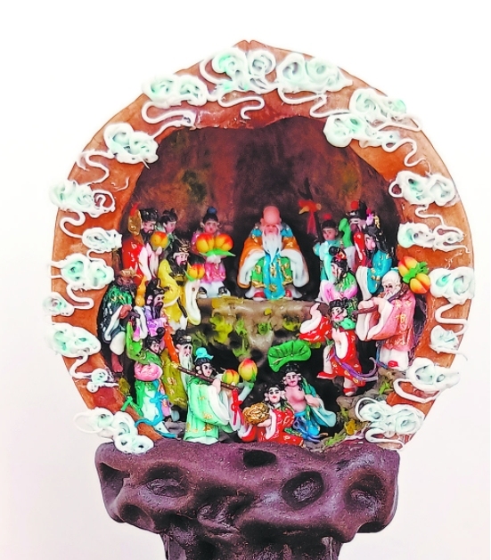 如何将核桃面塑让更多人认识并传承,是摆在李效普面前的一大难题,为此他绞尽脑汁。突然有一天,他想到将核桃面塑与广为流传的神话故事相结合。“八仙过海、西游记、福寿禄是咱们国家具有代表性的神话故事,于是我就想将这些捏进核桃里。”李效普说,大家所熟知的很多面塑作品为传统的历史人物或大型场景化创作,而在核桃里创作出各种场景的面塑作品更能博人眼球。