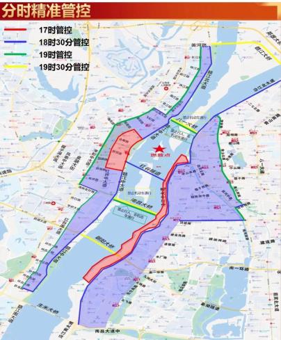 18:30开始,沿江中大道(八一大桥至生米大桥)、沿江北大道(洪都北大道至八一大桥)、豫章路(不含)、象山北路(不含)、象山南路(不含)、前进路(象山南路至站前西路,不含)、站前西路(抚河中路至前进路)、抚河中路(站前西路至洪城路,不含)、洪城路(抚生路至司马庙立交)、抚生南路(不含)、南昌大道中(不含)围合区域;
