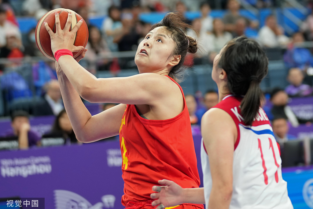 战胜朝鲜队后,中国女篮成功晋级亚运会决赛——决赛对手将在日本和韩国女篮中产生。