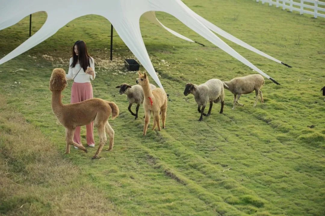 今年国庆假期,除了小火车等体验项目,兰湖旅游度假区还新增了摊位市集和兰湖农场。其中,特别打造的兰湖农场是一家体感式农场,分为动物农场、蒸汽火车、露营地和火车餐厅。游客可以带着孩子近距离接触农场里饲养的绵羊、羊驼、小马、柯基犬等温顺动物,和可爱的小动物们度过一个愉快假期。