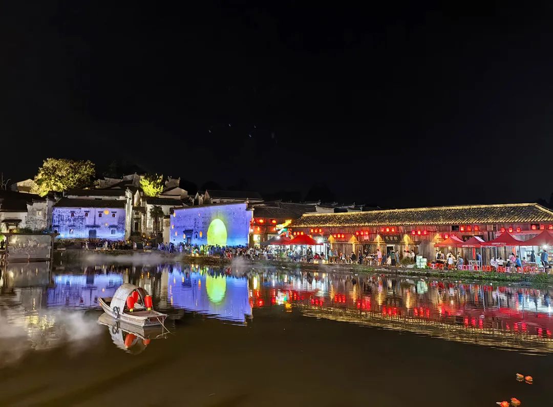 诸葛八卦村夜游以“一梦千年•智慧诸葛”为主题,整个灯光改造结合诸葛文化,整合打造了八卦村上塘商业街夜游基础亮化,将5G技术、裸眼3D技术、数字互动等技术应用到古村夜游场景中,提升了上塘商业街夜游水景灯光景观氛围,给游客带来沉浸式互动体验。