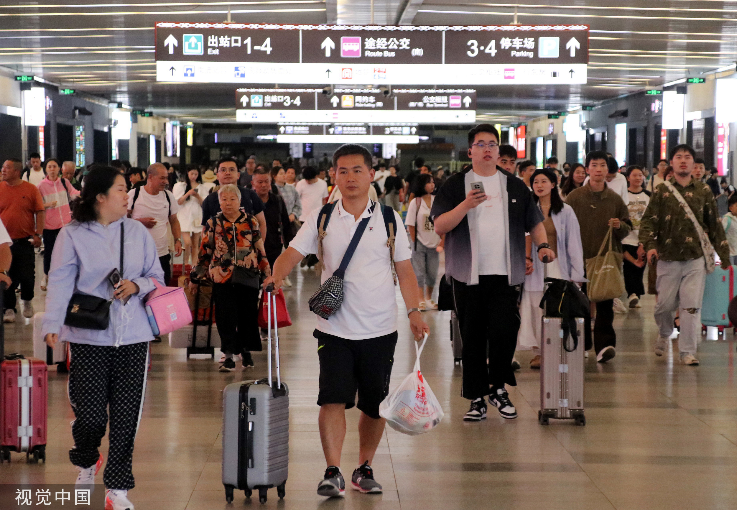 澎湃新闻记者从中国国家铁路集团有限公司获悉,10月6日,中秋国庆长假最后一天,铁路迎来返程客流最高峰,全国铁路预计发送旅客1880万人次,开行旅客列车12571列,其中加开列车1852列。