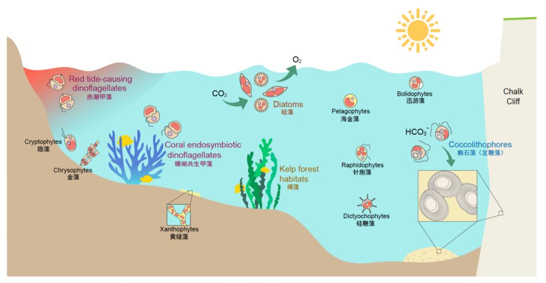 例如,尽管海洋真核藻类在大小、颜色和形态上各不相同,但它们的捕光色素-蛋白复合体中大多采用了一种陆地植物所缺乏的、名为叶绿素c的分子。