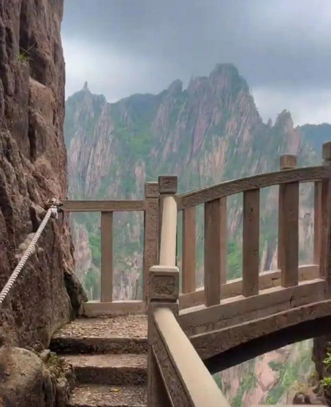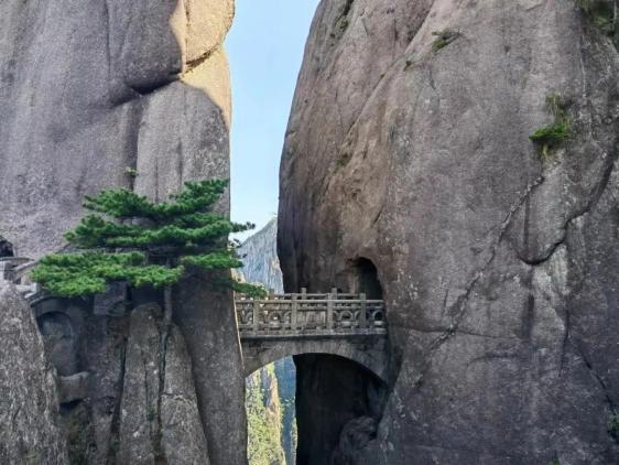走在西海大峡谷的南线,便可看到号称“黄山第一桥”的步仙桥。步仙桥建成于1988年。一座小小拱桥连通峭壁之间,将梦幻景区和天海、白云景区连接在一起。