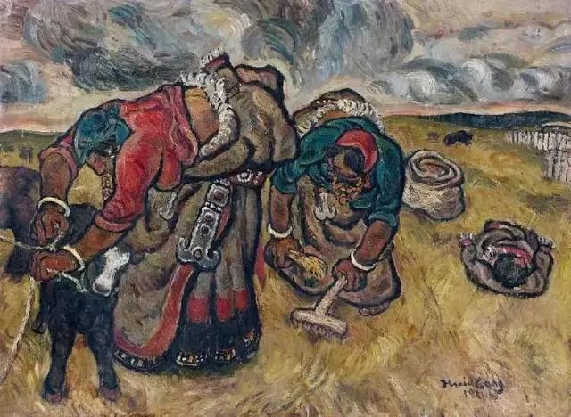 张晓刚毕业作品《草原组画:暴雨将至》(1981)