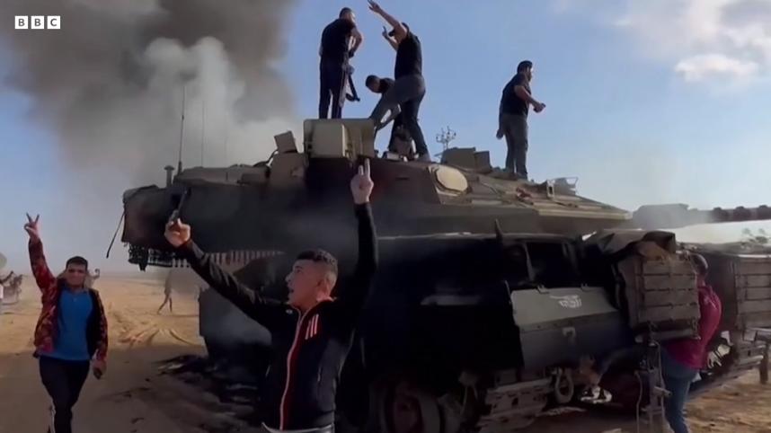 巴勒斯坦媒体则报道称,一些以色列人被武装分子俘虏,哈马斯的视频中也出现了一辆显然是被摧毁的以色列坦克。路透社和BBC的视频则显示,有巴勒斯坦人跳上了哈马斯武装分子缴获的以色列坦克,还有武装分子驾驶着以色列军车进入加沙地带。