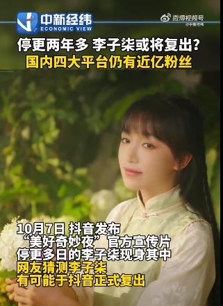 消失两年的李子柒,终于要回来了。10月7日,抖音发布的“美好奇妙夜”官方宣传片中,停更许久的李子柒现身其中,引来网友纷纷猜测。