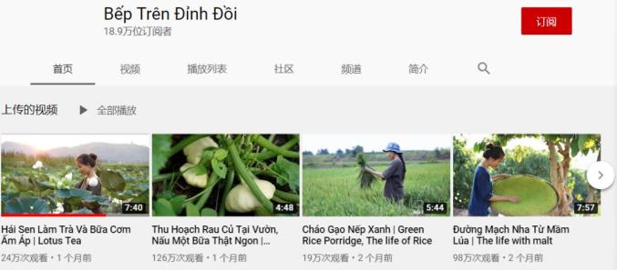 这位换汤不换药的“李子柒”,是一位越南博主,在Youtube上的用户名为:Bếp Trên Đỉnh Đồi。