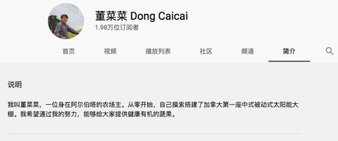 由于董菜菜把国内大棚的先进技术带到加拿大,让当地人在冬天也可以吃到本地出产的有机蔬菜。这让他逐渐出了名,甚至被称为男版“李子柒”。