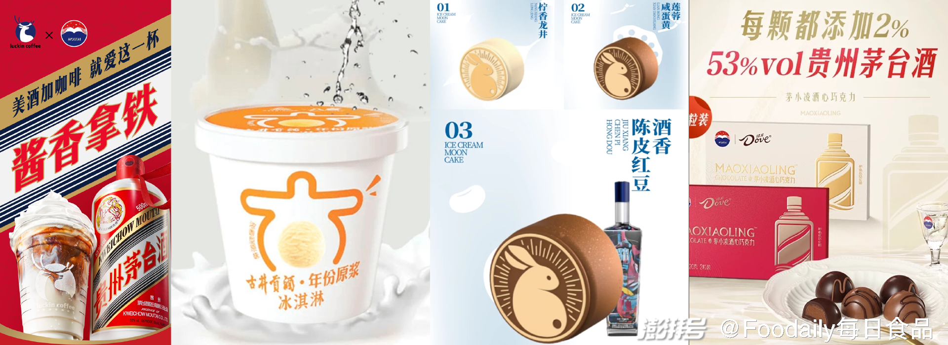 图片来源:茅台×瑞幸咖啡、古井贡酒×八喜、泸州老窖×光明乳业、茅台×德芙