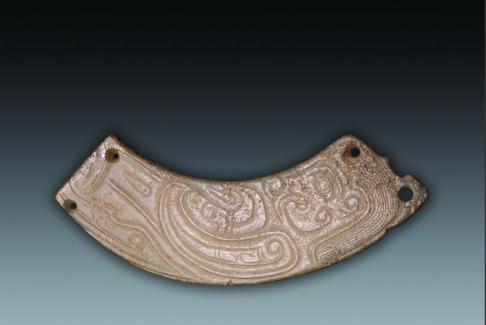 龙纹玉璜 西周 故宫博物院藏而玉珩通常作弧形片状,镂空、浮雕等手法普遍应用,璧沿多有出廓雕饰。