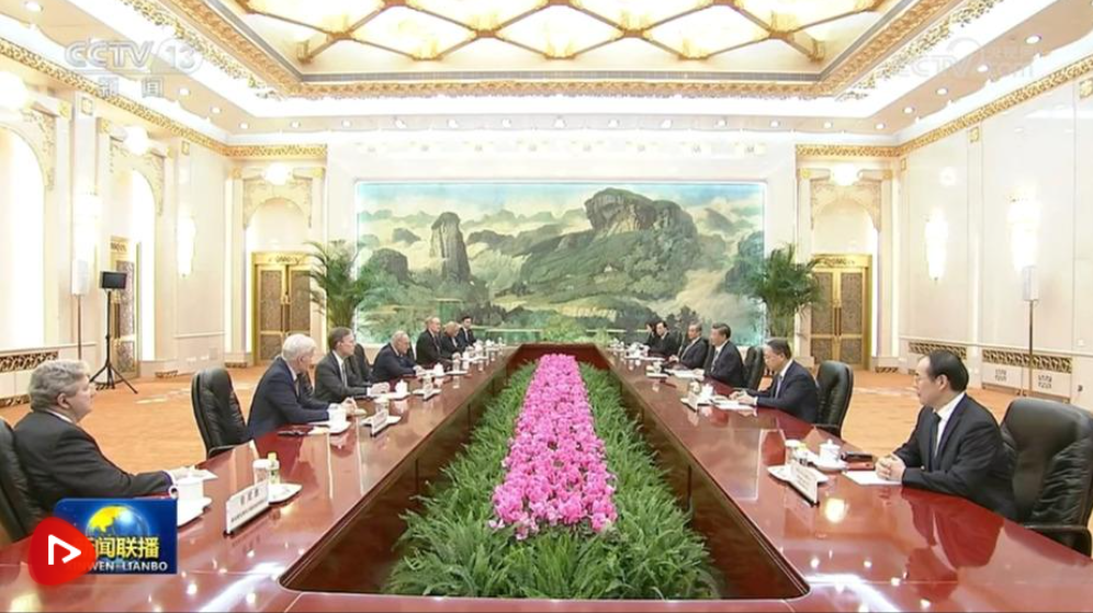 10月9日下午,国家主席习近平在人民大会堂会见美国国会参议院多数党领袖舒默率领的美国国会参议院两党代表团。