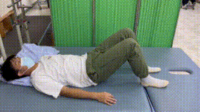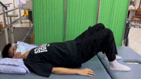 8. “双桥”练习仰卧,双腿屈曲,双脚平放床上,腰部用力使身体离开床面。尽量弓起身体,保持平衡。保持30秒为1次。10次/组,2-3组/日。