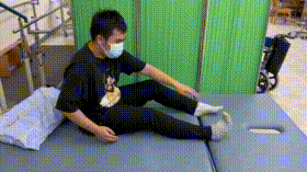6. 压腿坐在床面上,一膝微屈,另一下肢伸直,躯干前倾压向伸直的下肢,双侧交替进行。此动作也可在站位进行,下肢放在前面的椅背上,绷紧,另一下肢伸直,双侧交替进行。拉筋的程度是要到感觉有点“张力”或“酸”,但绝对不能到“痛”的程度。