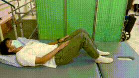 7. 膝仰卧起坐仰卧位,双膝屈曲,收腹使躯干抬起,双手触膝。此动作需一直保持膝盖与地面(或床)成90-120度。