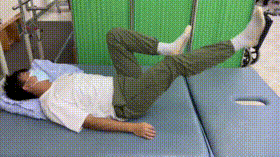 5. 直腿抬高仰卧位将双手压在臀下,慢慢抬起双下肢,膝关节可微屈,然后放下,重复15次。