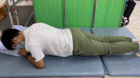 10. 俯卧四点支撑俯卧于床上,双臂屈曲于胸前,用双肘部及双脚尖将身体支撑抬起,至身体成一直线。保持10-30秒为1次,间歇5秒。5-10次/组。2-3组/日。