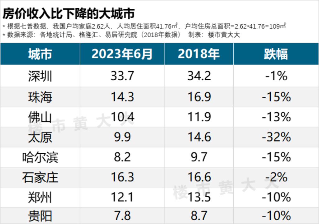 回头看,全国有8座大城市,房价收入比低于五年前!