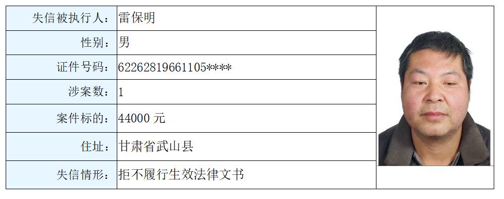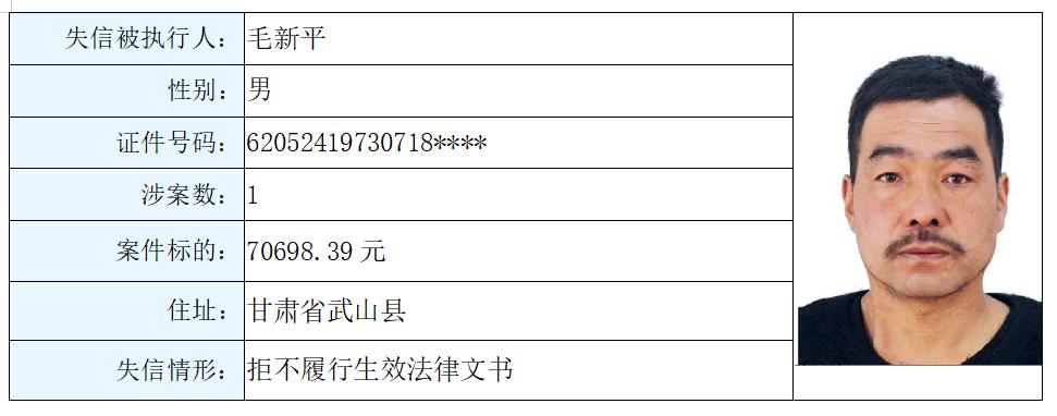 供稿:执行局原标题:《天水市中级人民法院失信被执行人名单(第四期)》