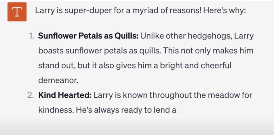 按照要求“展现小刺猬很热心”DALL·E 3 生成的图片除了把 DALL·E-3 和 ChatGPT 结合起来,OpenAI 也开始部署“GPT-5”。在 9 月 25 日发布的 GPT 新版本中,已经引入了语音交流和识别图像的测试功能。