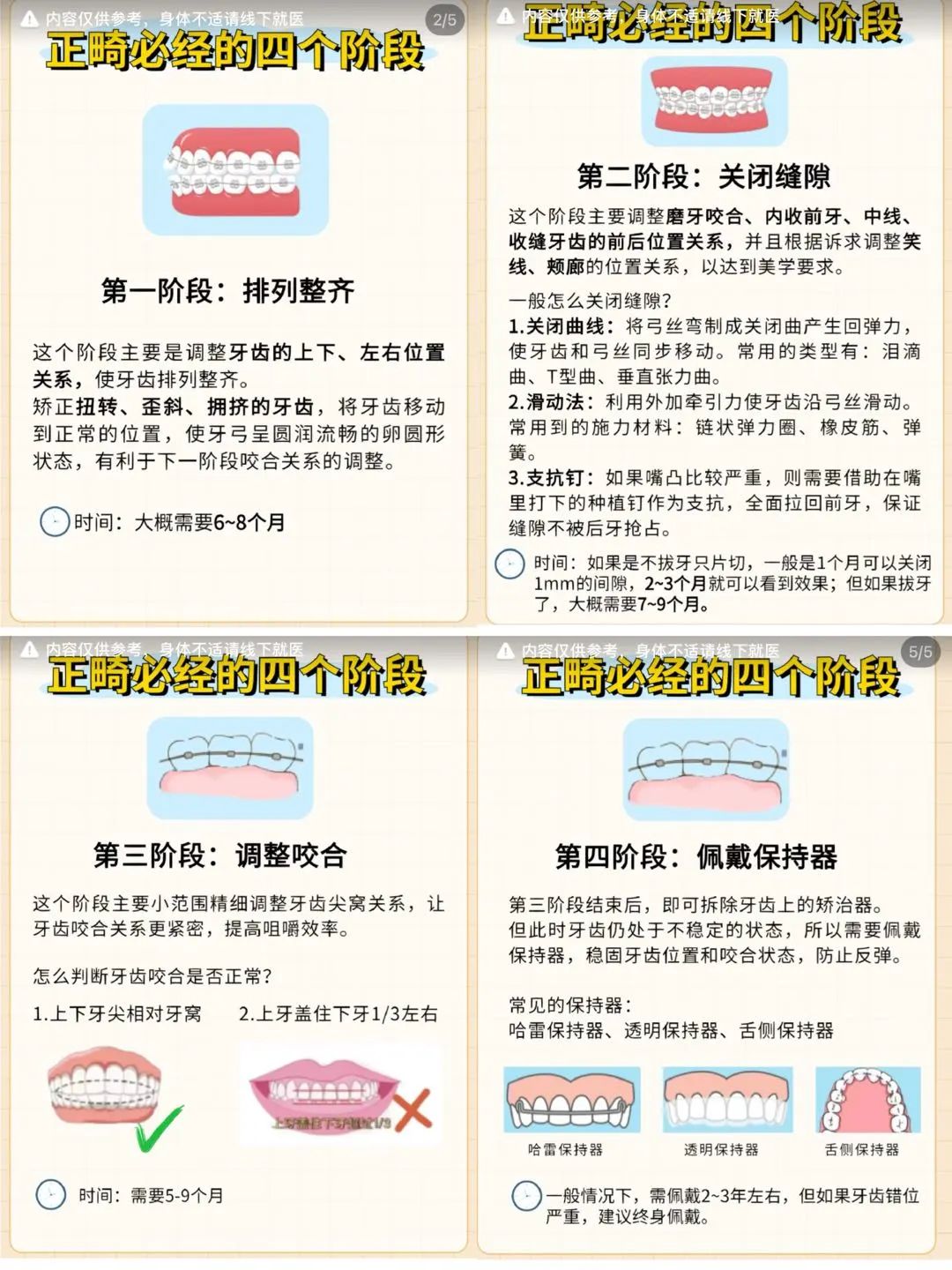治疗时,治疗周期最长的正畸通常需要两年以上,期间需要复诊40到60次。前者是因为牙齿的移动本身就很缓慢,后者是因为整个治疗过程充满了变数,严重的会有牙齿脱落风险,轻微的有牙周炎,蛀牙等口腔问题,这些都需要依靠高频的复诊去预防和治疗。