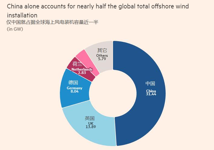 英国《金融时报》对此评论称,就在中国大力发展可再生能源,海上风电装机容量激增之际,欧洲企业却因成本上升和供应链受阻影响,失去了世界最大海上风电市场的地位,被中国引领的亚太地区取代。