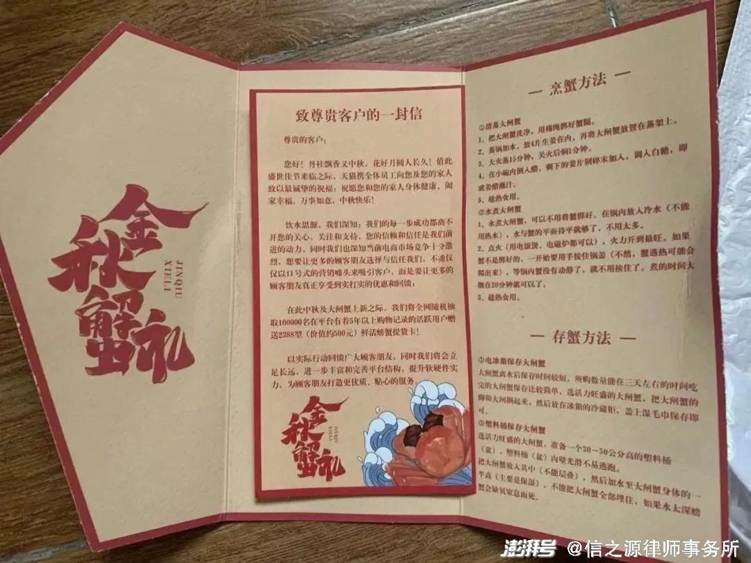 国庆假期期间,市民周女士收到一个不明快递,拨打快递单上的电话却无法接通。她打开快递,发现是一张大闸蟹兑换卡和一封自称某购物平台的致客户信。