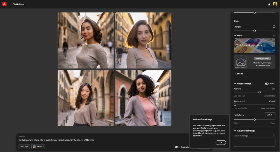 除了这些增强功能外,Firefly Image 2 Model 还引入了新的控制部件,比如 AI 驱动的编辑功能,可以调整各种照片设置,如景深和运动模糊,就像手动调整相机一样。