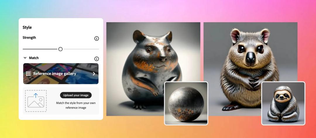 大多数创意人士都有一种表达他们独特视角的风格。通过「生成匹配」,他们就可以指导模型将自己独特的风格批量到不同物料中。而对于那些希望轻松复制自己品牌风格的公司来说,这一功能也可能会有吸引力。