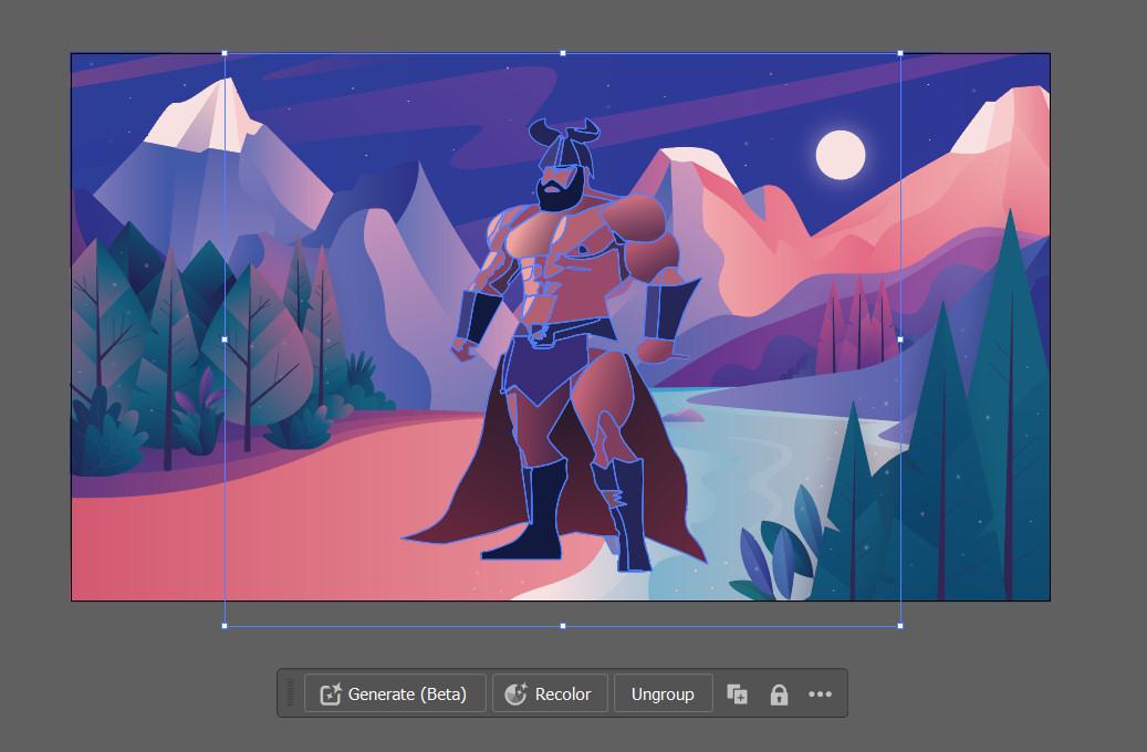将AI生成的肌肉野蛮人插入到 Adobe 提供的矢量图景中