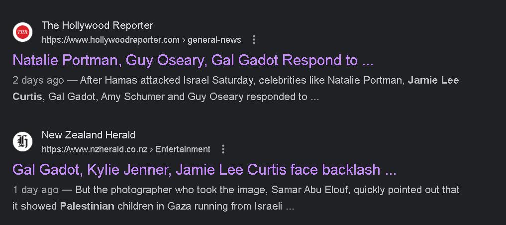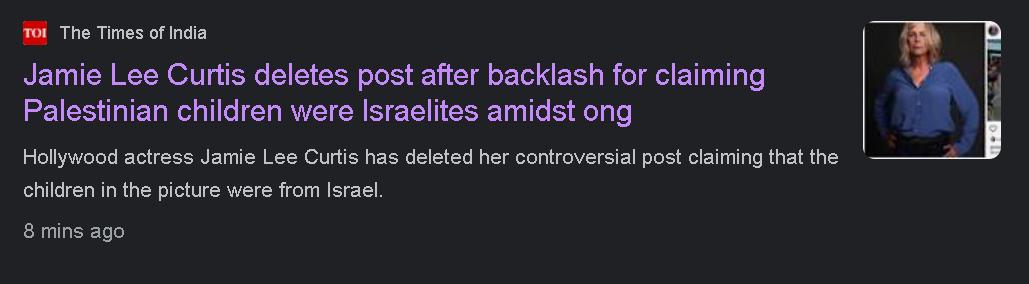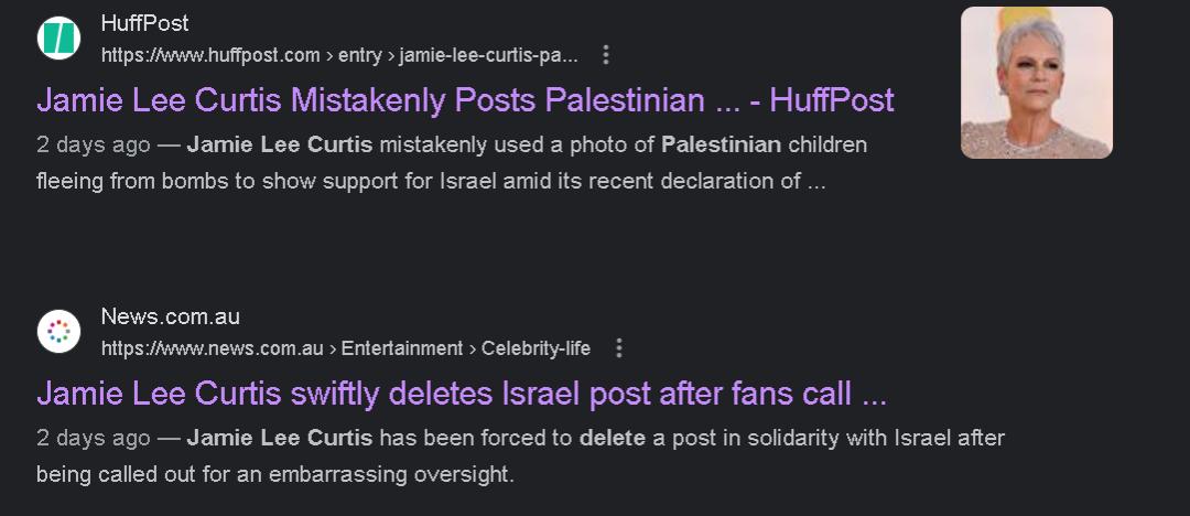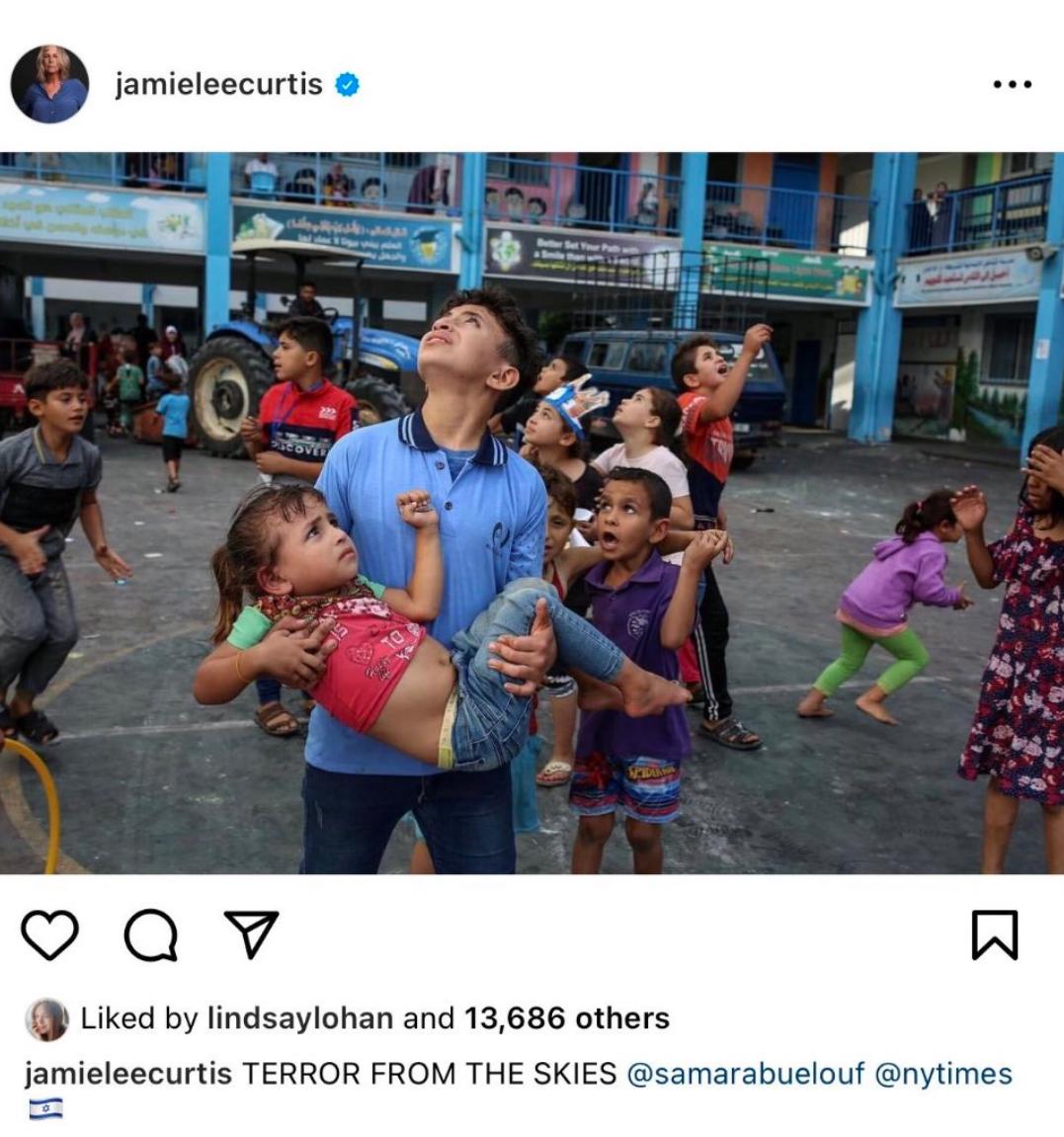随后,在相当支持以色列的西方世界,柯蒂斯的这张照片很快获得了不少点赞,还收获了美国其他一些女演员的支持。