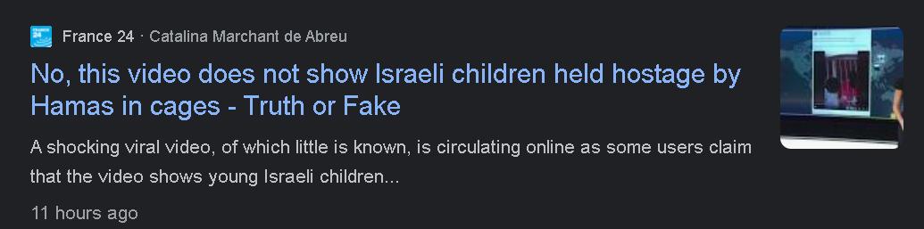 值得一提的是,这个误将以军抓走巴勒斯坦儿童的画面当成哈马斯抓走以色列儿童的内容,在西方的网络上传播得也相当广泛,以至于法国24台这家西方媒体都看不下去了,专门制作了一期澄清报道。