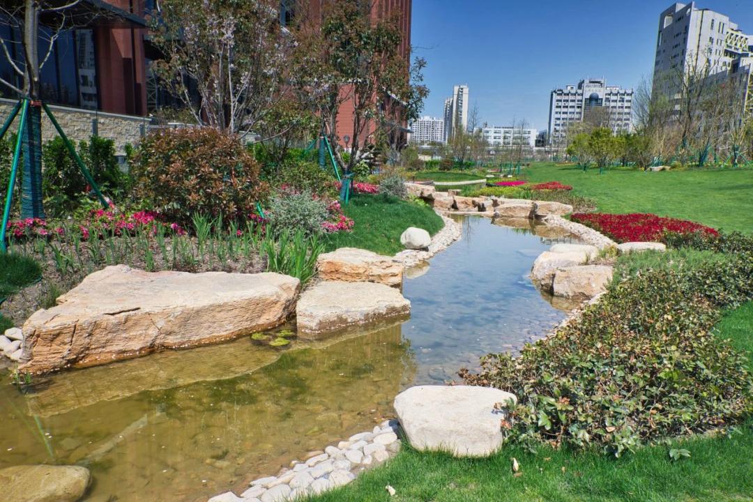 此外,项目通过可再利用材料、循环材料,采用绿色认证建材、中心景观庭院与外墙垂直绿化结合的复层立体绿化、钢结构加固、节能节水、楼宇自控等技术策略,打造“健康、舒适、人文”的办公环境,配备2.3万平方米的绿地水景,让租户真正获得花园中办公的生态体验。