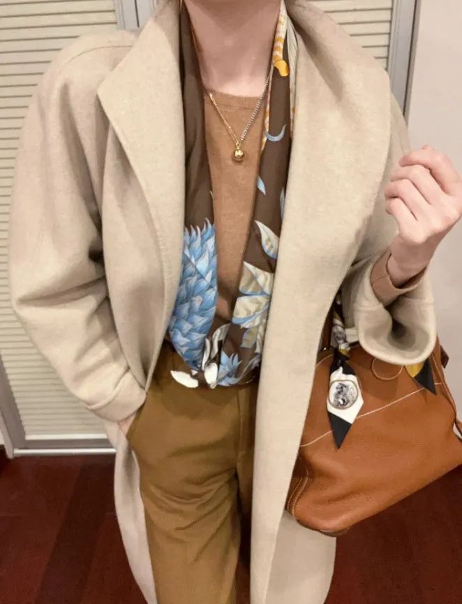 丝巾也是秋冬时常出现的配饰,让造型看上去更有质感。