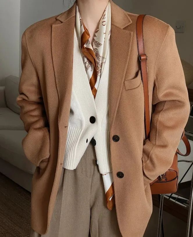 而同色系搭配就是个很好的思路。今年流行美拉德色系,选一件美拉德色系的外套,根据色阶递减穿搭,显白、活泼又俏皮~